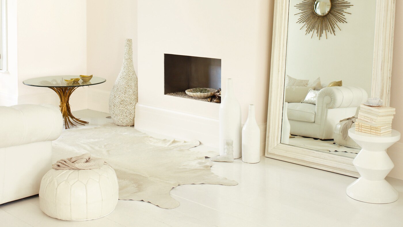 Aksesuarlarla süslemesi kolay bir görünüm için, duvarlar ve zeminde sıcak vanilya beyazını kullanmayı deneyin ve tavanda ferah bir beyaz ile bunlara aydınlık katın.