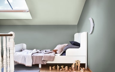 Raflar ve sepetler, kitapları sergilemek ve oyuncakları düzenli bir şekilde saklamak için idealdir. Yatak odasının geri kalanıyla uyumlu renklerde saklama çözümleri seçin. Örneğin, duvarların odak noktası olmasını istediğiniz yeşil odalar için doğal ahşap saklama çözümleri mükemmeldir.