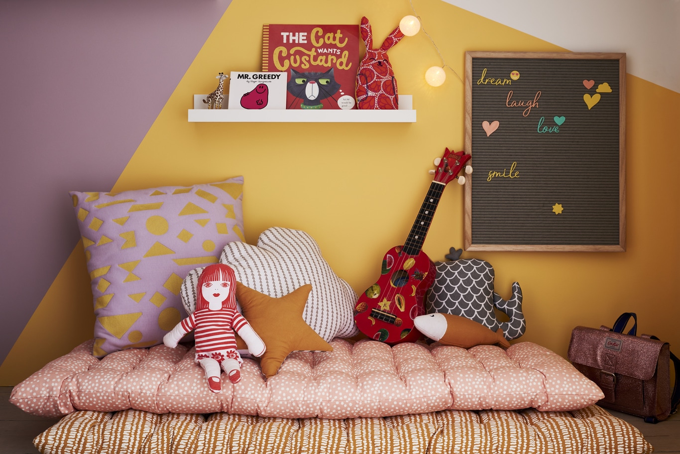 Çocuğunuz odasında kitap okumayı seviyor mu? Yumuşak yastıklar, battaniyeler, peluş oyuncaklar ve oyun çadırı ile rahat bir okuma köşesi oluşturmayı düşünün. Bir masa ve birkaç lamba ekleyerek alanı daha da sakin hale getirin – çocuk yatak odaları için en iyi aydınlatma seçeneklerinden biri.