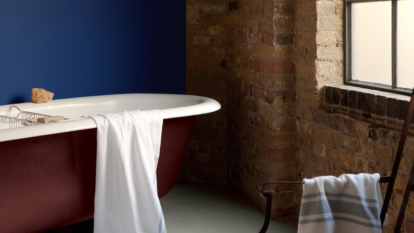 İndigo mavisi, kırsal dekora sahip bir mekanda çarpıcı bir duvar yaratır.