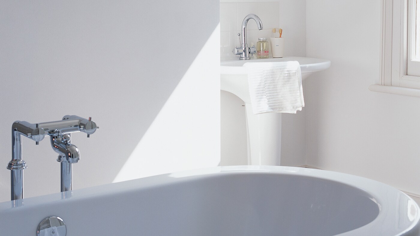 Parlak ve ışıl ışıl bir banyo için bembeyaz bir uyum tercih edin
